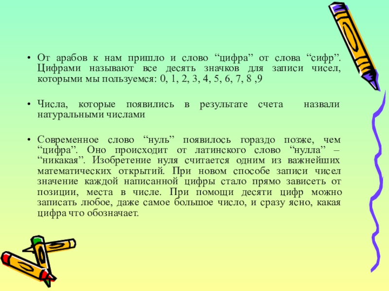 Слайд 9От арабов к нам пришло и слово “цифра” от слова “сифр”.