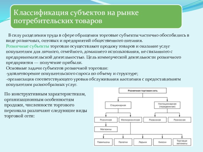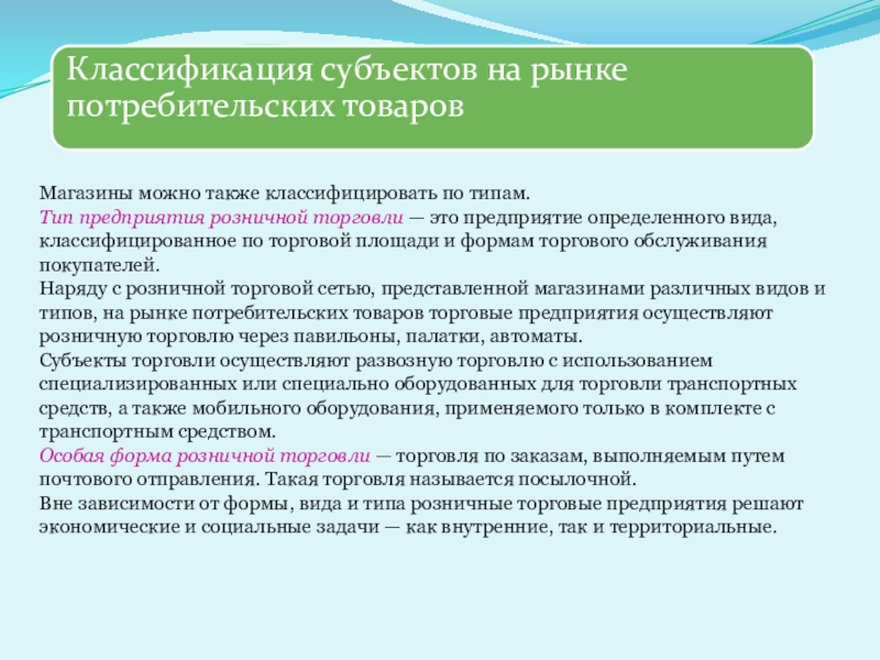 Слайд 4 Торговые субъекты на рынке потребительских товаров классифицируют по размеру в зависимости