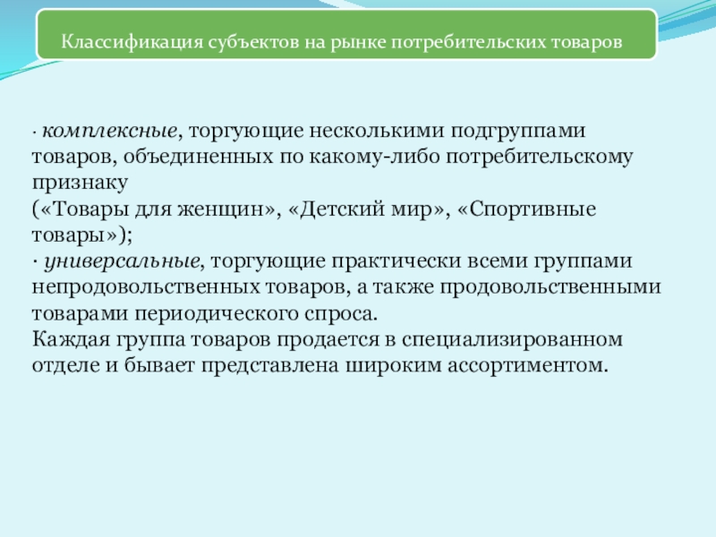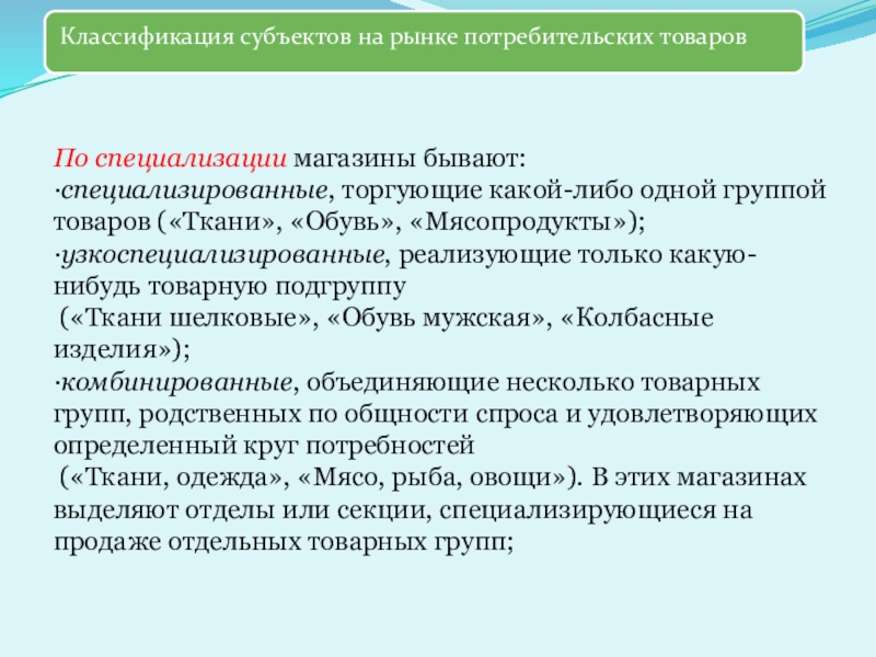 Слайд 1Классификация субъектов на рынке потребительских товаров