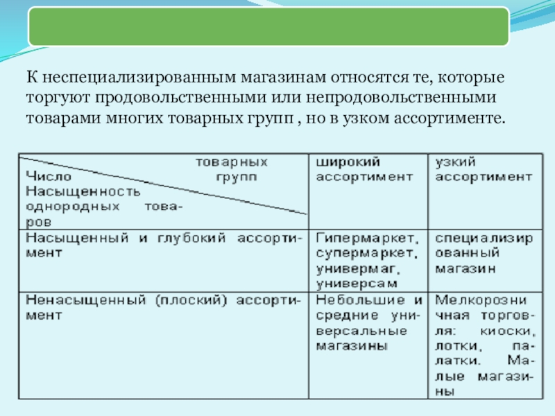 Слайд 10К неспециализированным магазинам относятся те, которые торгуют продовольственными или непродовольственными товарами