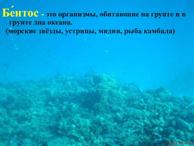 Слайд 12Бе́нтос - это организмы, обитающие на грунте и в грунте дна океана.