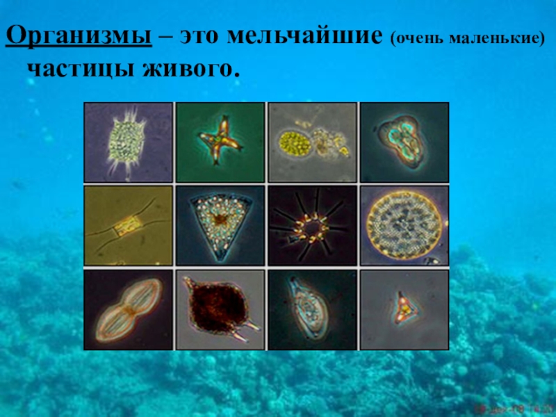 Организмы – это мельчайшие (очень маленькие) частицы живого.