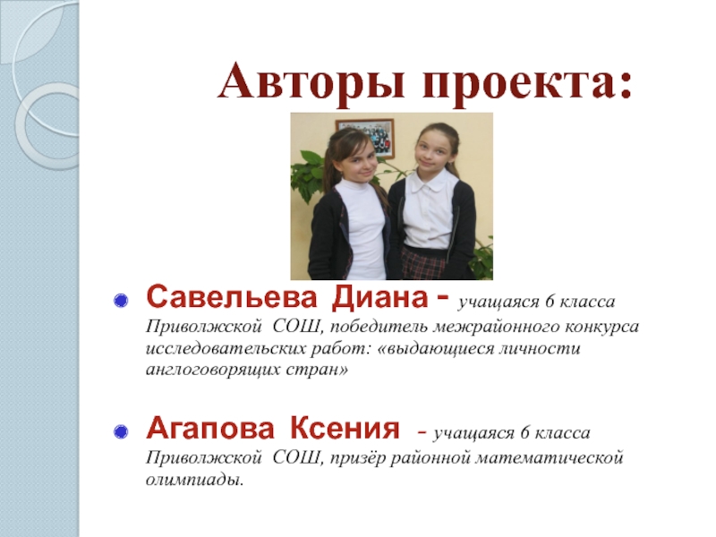 Авторы проекта: Савельева Диана - учащаяся 6 класса