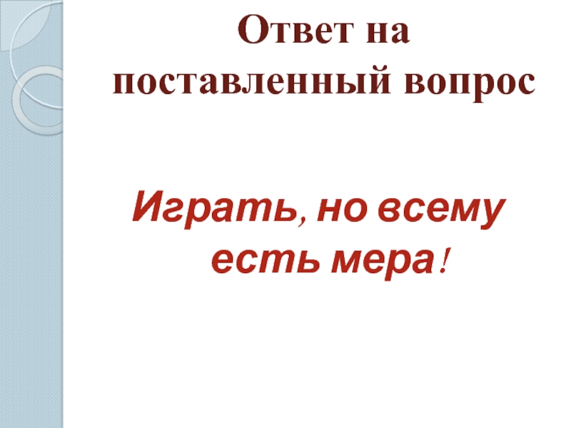 Ответ на поставленный вопросИграть, но всему есть мера!