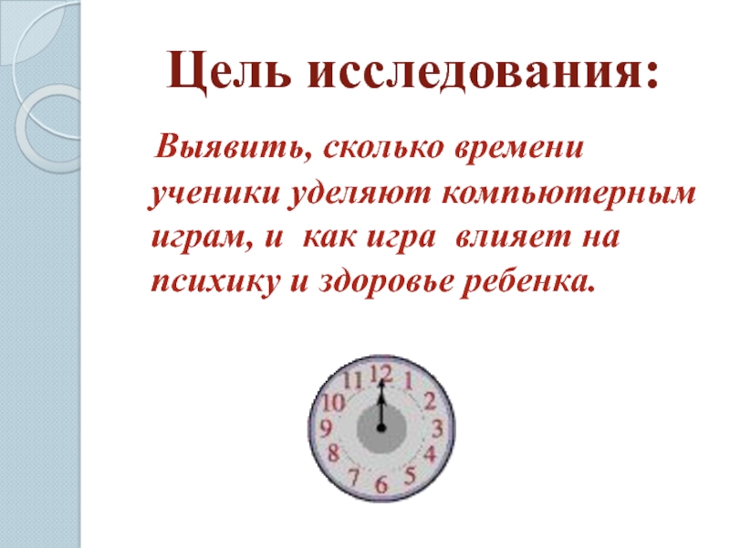 Цель исследования:  Выявить, сколько времени ученики уделяют компьютерным играм, и как игра влияет на психику и