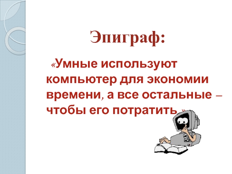 Эпиграф:  «Умные используют компьютер для экономии времени, а все остальные – чтобы его потратить.»