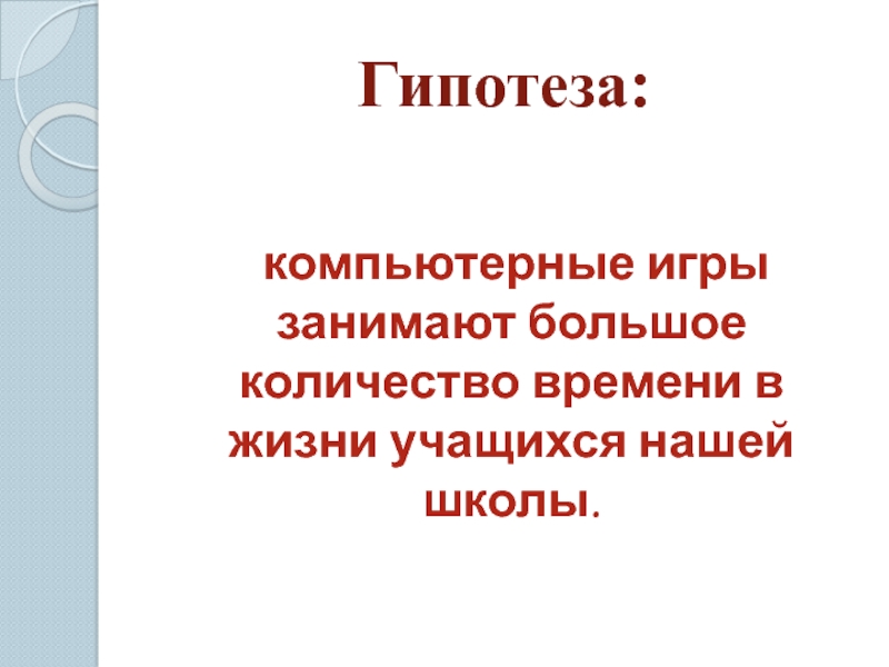 Гипотеза:  компьютерные игры занимают большое количество времени в жизни учащихся нашей школы.