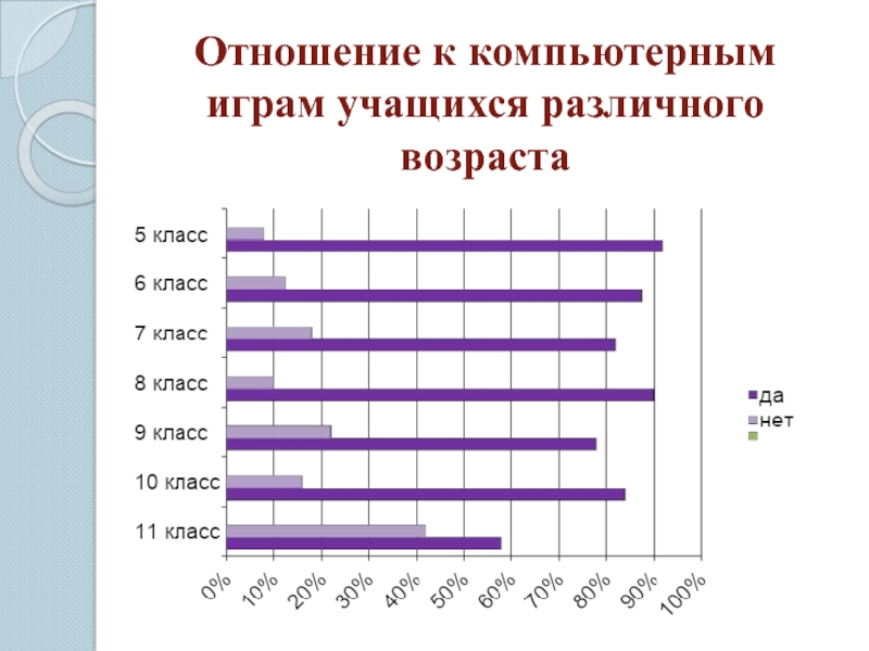 Слайд 10Отношение к компьютерным играм учащихся различного возраста