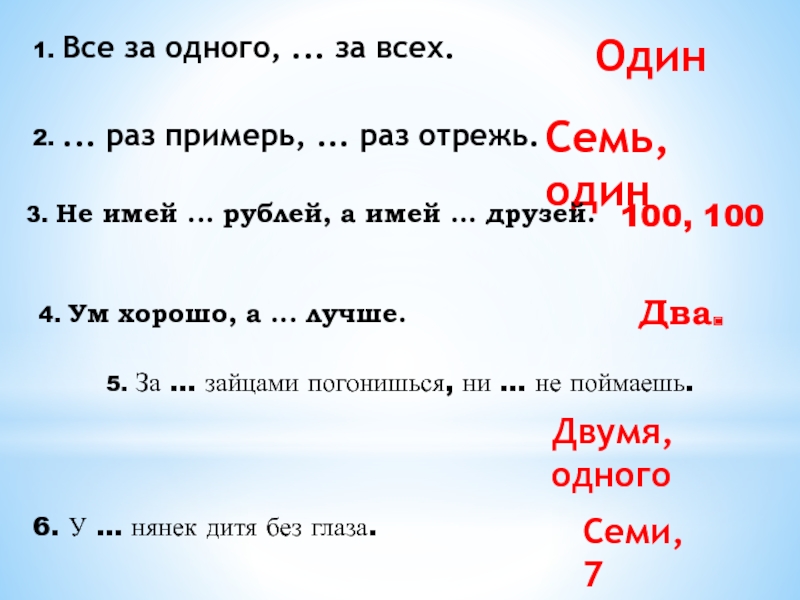 5. За ... зайцами погонишься, ни ... не поймаешь.