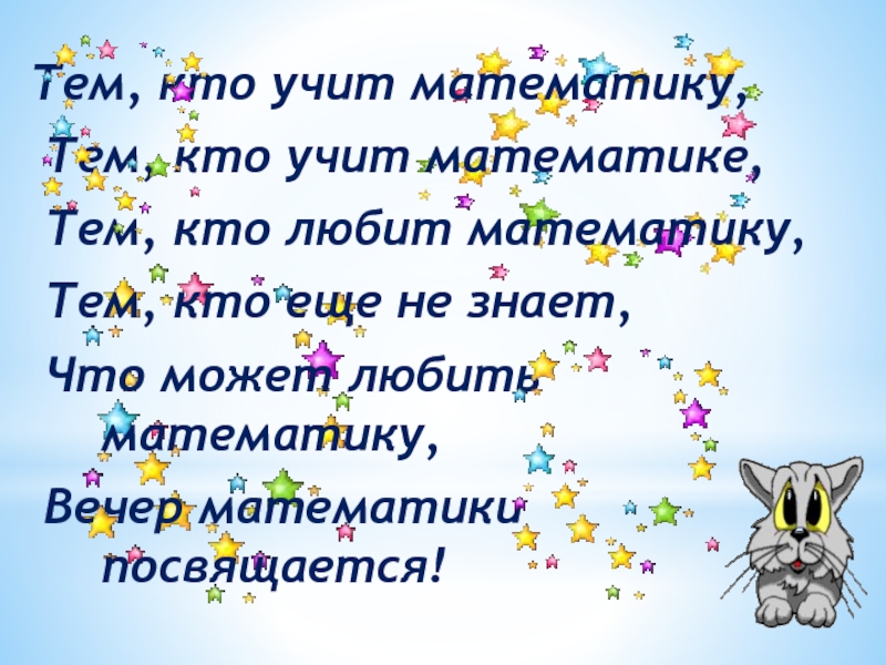 Это сайт презентаций, где можно хранить и обмениваться своими презентациями, докладами, проектами, шаблонами в формате PowerPoint с другими пользователями. Мы помогаем школьникам, студентам, учителям, преподавателям хранить и обмениваться учебными материалами.