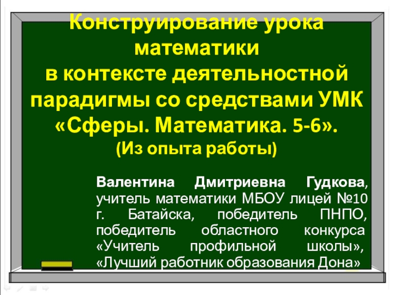 Валентина Дмитриевна Гудкова, учитель математики МБОУ лицей №10 г. Батайска, победитель ПНПО, победитель областного конкурса «Учитель профильной школы», «Лучший работник образования Дона»