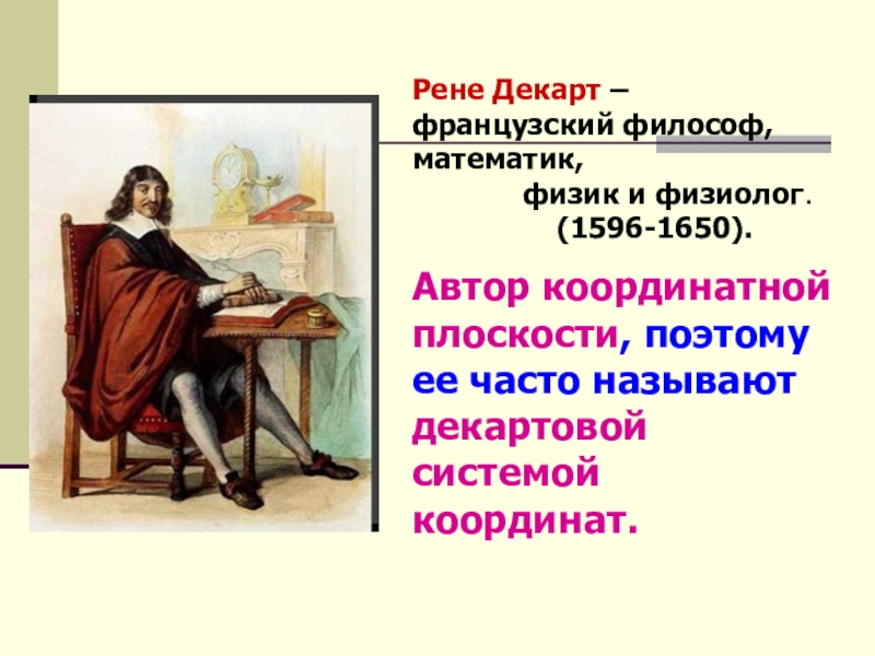 Автор координатной плоскости, поэтому ее часто называют декартовой системой координат.