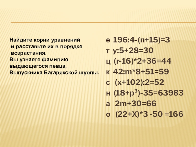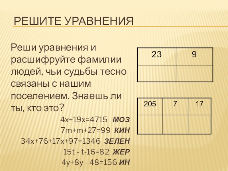 Реши уравнения и расшифруйте фамилии людей, чьи судьбы