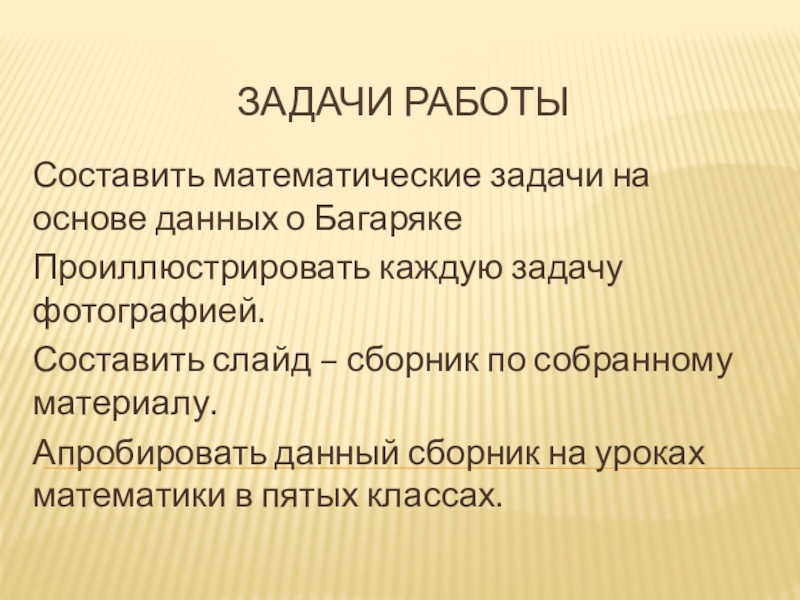 Составить математические задачи на основе данных о Багаряке