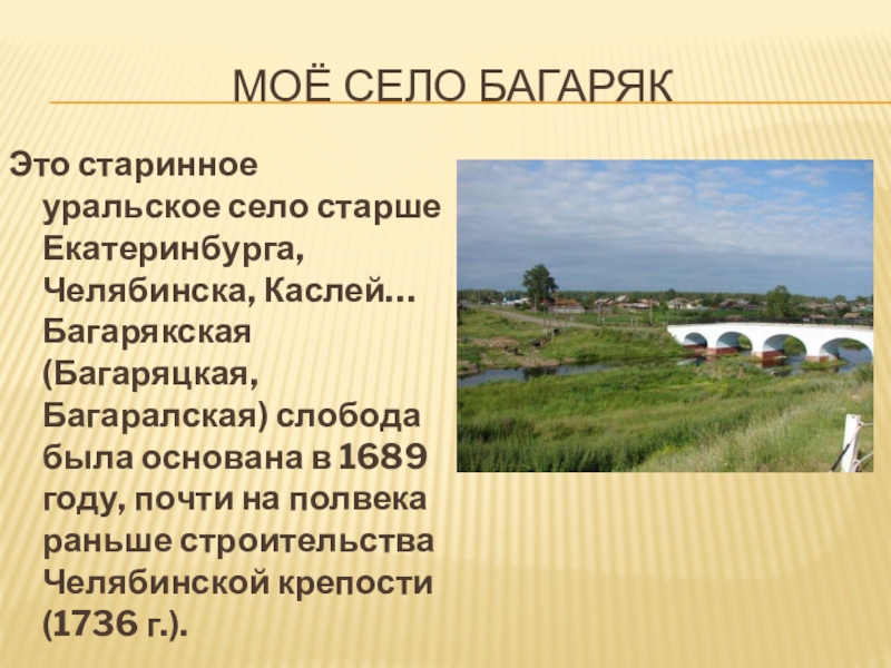 использованием исторических сведений о селе Багаряк и его жителях.