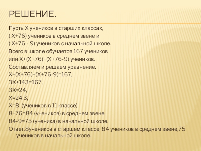 ( Х+76) учеников в среднем звене
