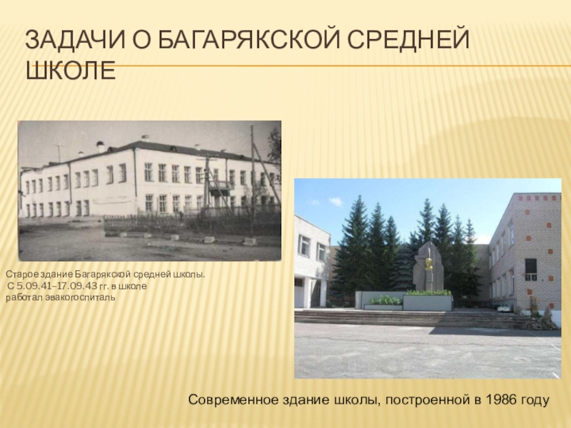 Слайд 17Задачи о Багарякской средней школе