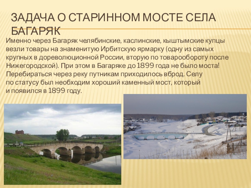 Слайд 9Задача о старинном мосте села багаряк