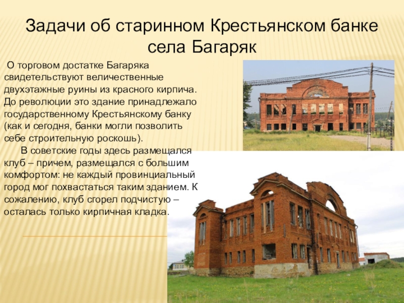Слайд 7Задачи об старинном Крестьянском банке села Багаряк