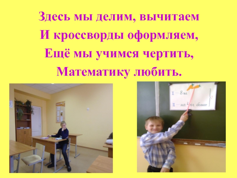 Здесь мы делим, вычитаемИ кроссворды оформляем,Ещё мы учимся чертить,Математику любить.