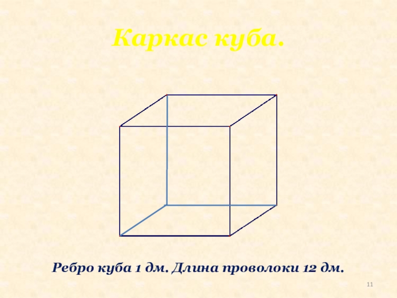 Ребро куба 1 дм. Длина проволоки 12 дм.