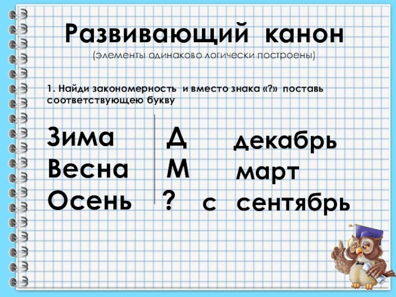 1. Найди закономерность и вместо знака «?» поставь соответствующею букву
