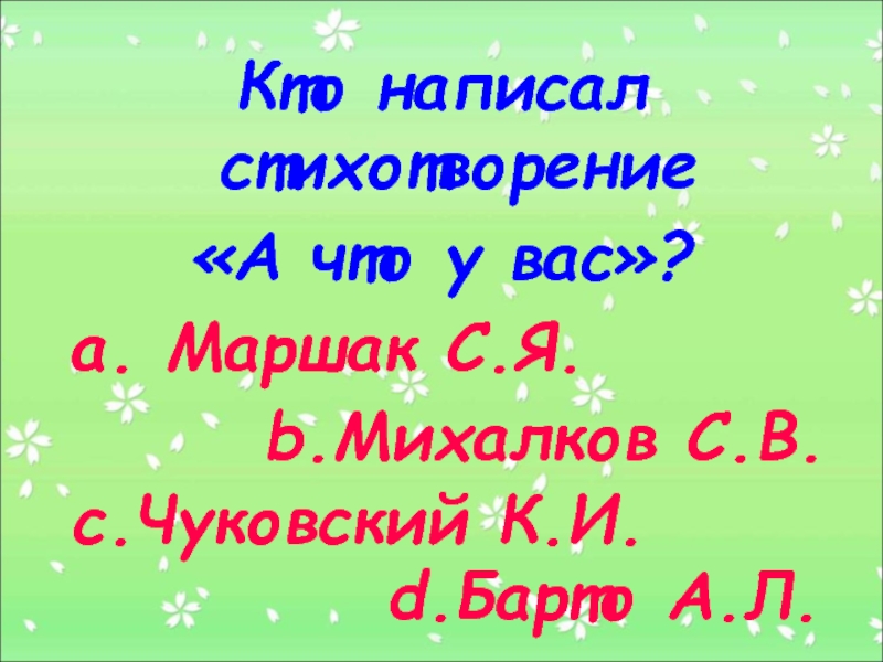 Это сайт презентаций, где можно хранить и обмениваться своими презентациями, докладами, проектами, шаблонами в формате PowerPoint с другими пользователями. Мы помогаем школьникам, студентам, учителям, преподавателям хранить и обмениваться учебными материалами.