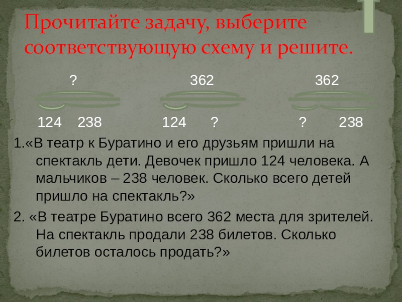 Прочитайте задачу, выберите соответствующую схему и решите.