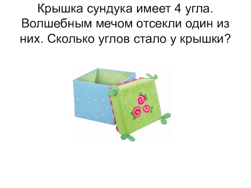 Слайд 6Крышка сундука имеет 4 угла. Волшебным мечом отсекли один из них.
