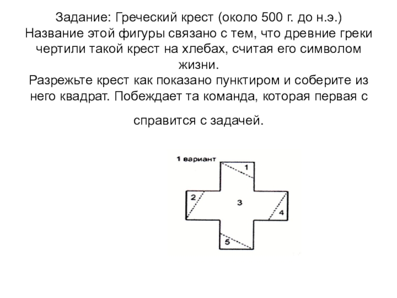 Слайд 28Задание: Греческий крест (около 500 г. до н.э.) Название этой фигуры