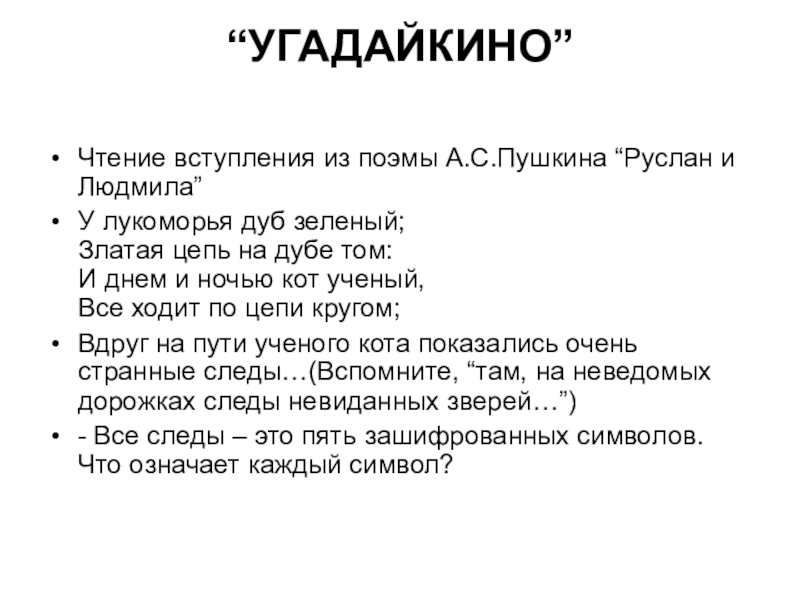 Чтение вступления из поэмы А.С.Пушкина “Руслан и Людмила”