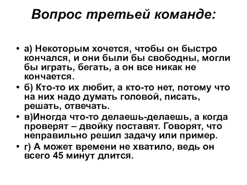 г) А может времени не хватило, ведь он всего 45 минут длится.