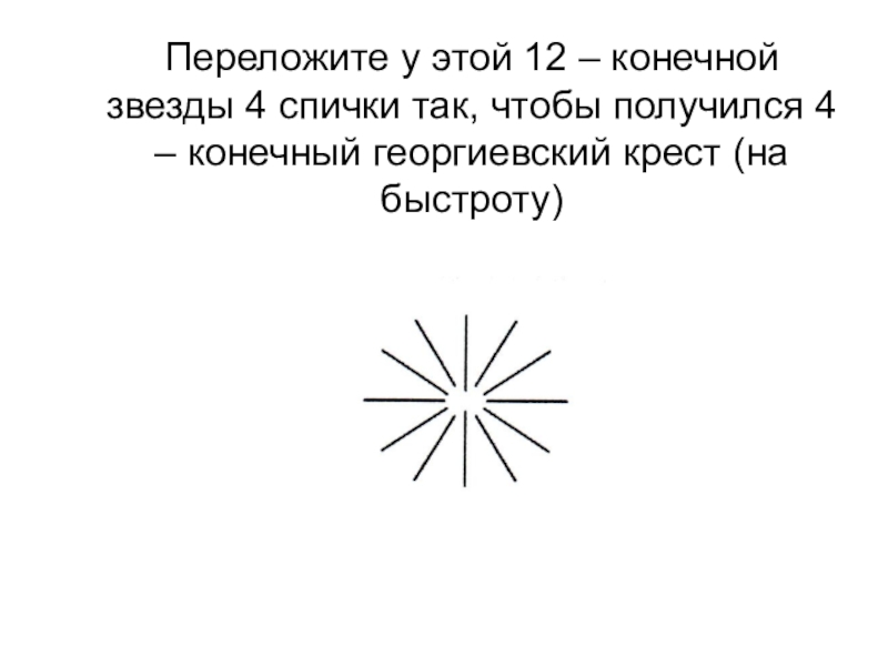 Слайд 32Переложите у этой 12 – конечной звезды 4 спички так, чтобы