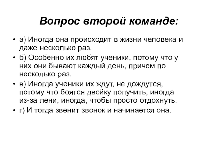 в) Иногда ученики их ждут, не дождутся, потому что боятся двойку получить, иногда из-за лени, иногда, чтобы просто отдохнуть.