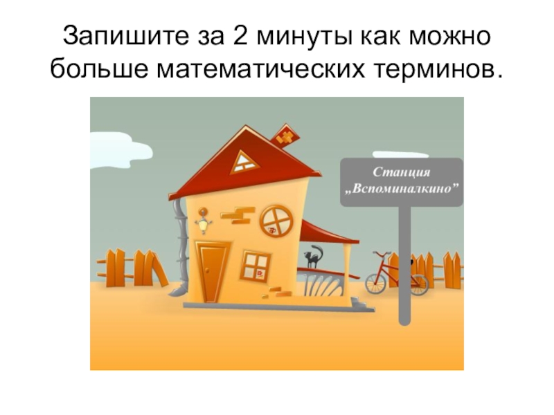 Слайд 4Запишите за 2 минуты как можно больше математических терминов.