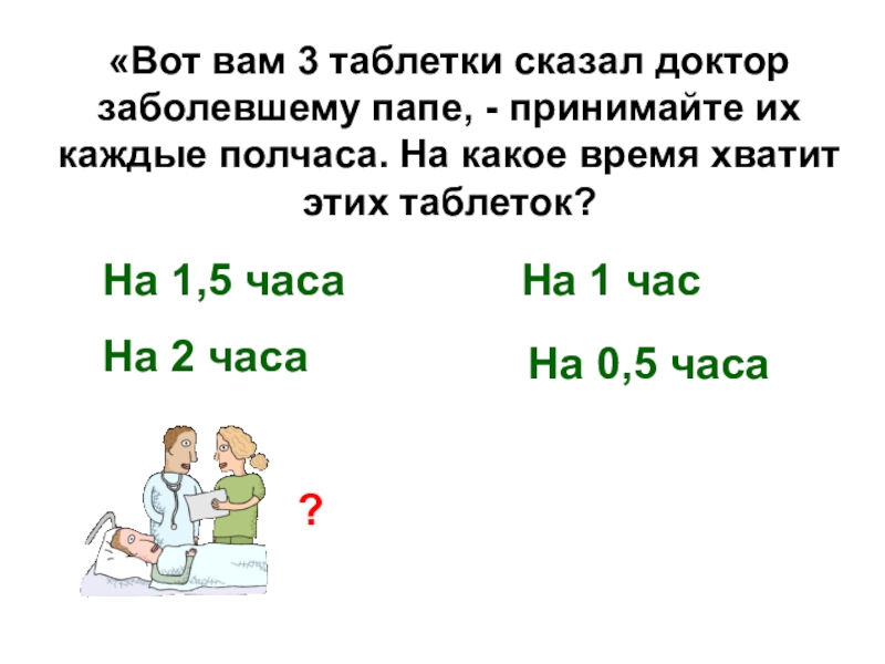 Слайд 10«Вот вам 3 таблетки сказал доктор заболевшему папе, - принимайте их