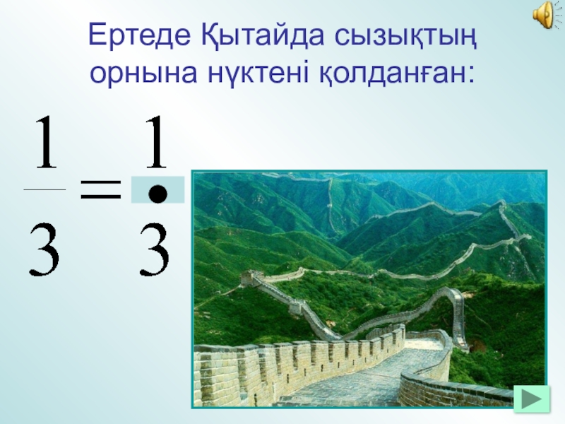 Слайд 3Ертеде Қытайда сызықтың орнына нүктені қолданған: