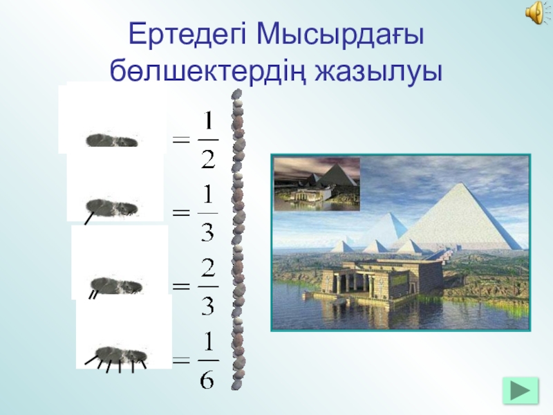 Слайд 2Ертедегі Мысырдағы бөлшектердің жазылуы