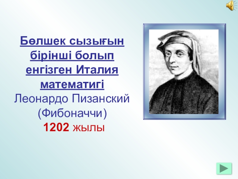 Слайд 4Бөлшек сызығын бірінші болып енгізген Италия математигі Леонардо Пизанский (Фибоначчи)