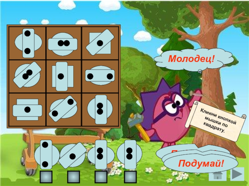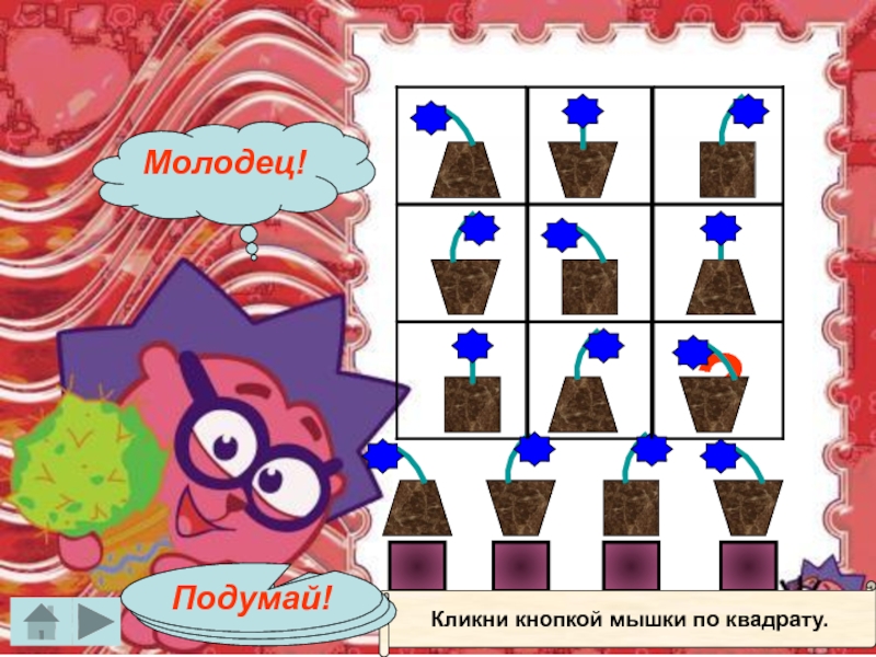 ?Кликни кнопкой мышки по квадрату.Молодец!Подумай!Подумай!Подумай!