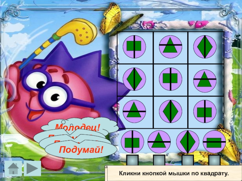 ?Молодец!Подумай!Подумай!Подумай!Кликни кнопкой мышки по квадрату.