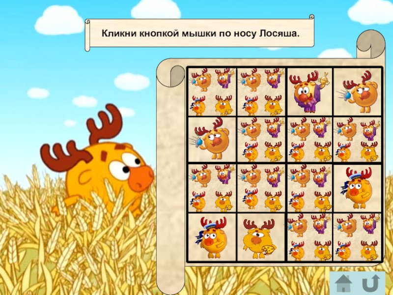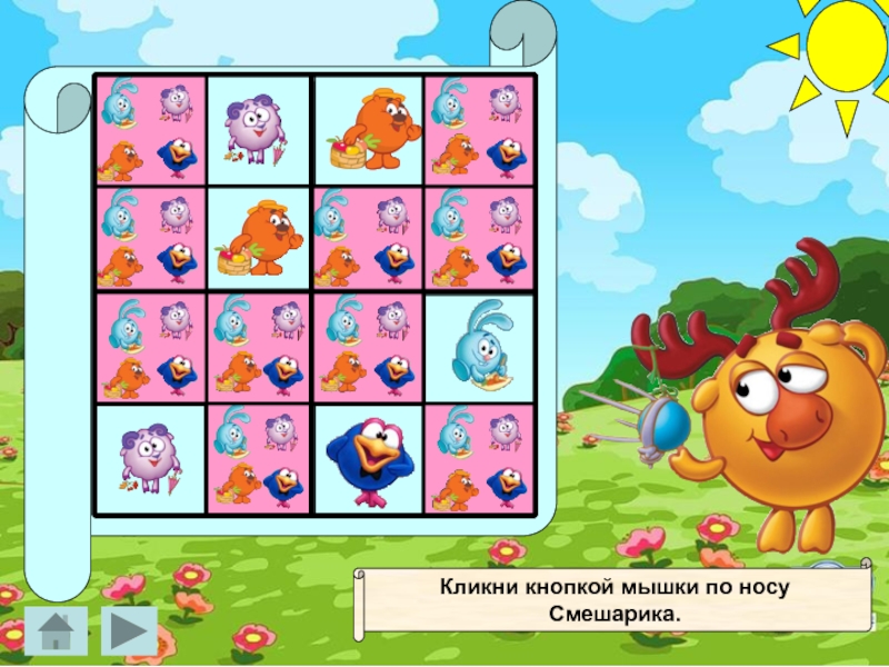 С кем играешь? Выбирай! Кликни кнопкой мышки по Смешарику.