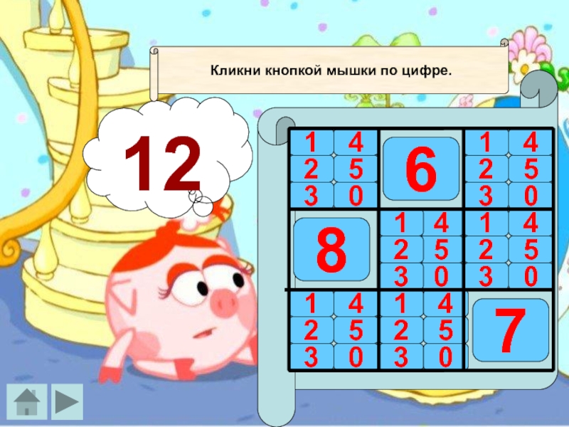 12687123450540321450321012345312450213450Кликни кнопкой мышки по цифре.