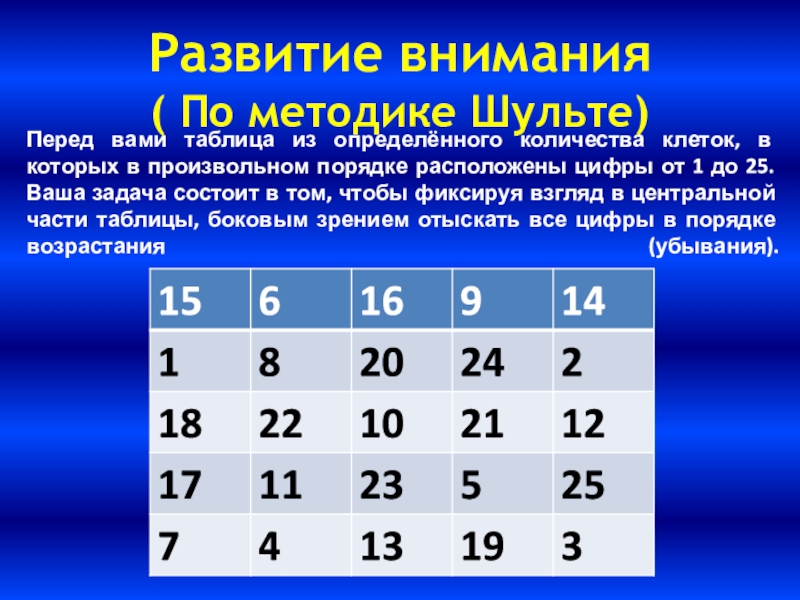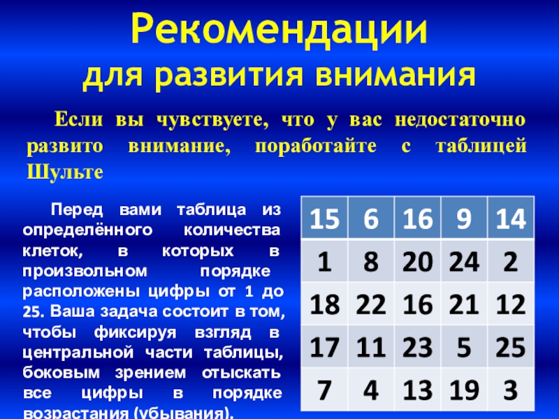 Если вы чувствуете, что у вас недостаточно развито внимание, поработайте с таблицей Шульте
