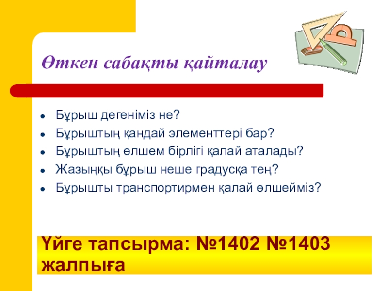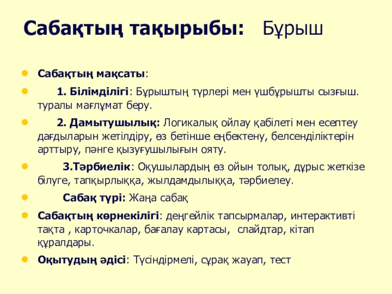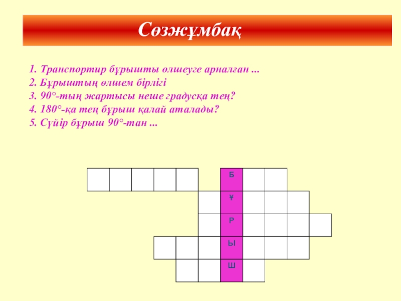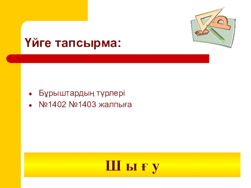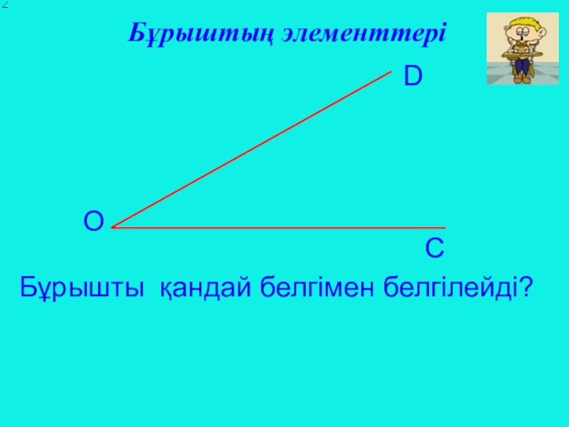 Суретте АВС – (АВD + ЕВС) = 900 - (250 + 400) = 250 DBE бұрышы Сүйір бұрыш