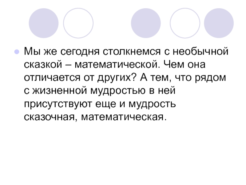 Слайд 3Мы же сегодня столкнемся с необычной сказкой – математической. Чем она