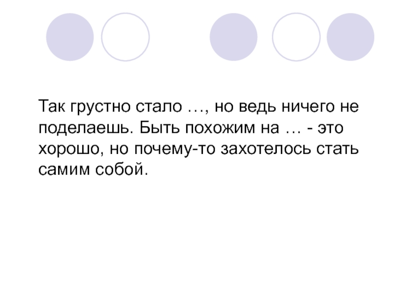 Так грустно стало …, но ведь ничего не поделаешь. Быть похожим на … - это
