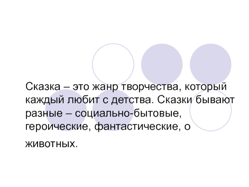 Слайд 2Сказка – это жанр творчества, который каждый любит с детства. Сказки