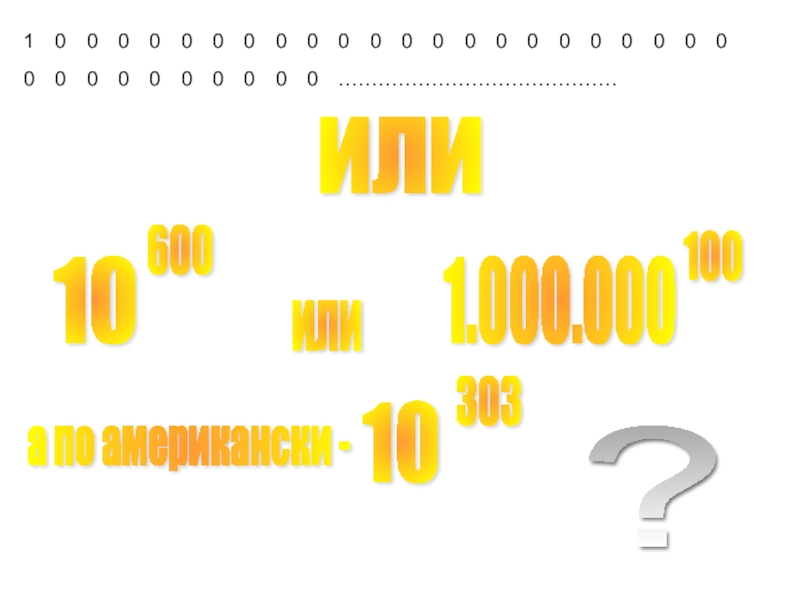 100000000000000000000000000000000……………………………………или10600или1.000.000100?а по американски -10303
