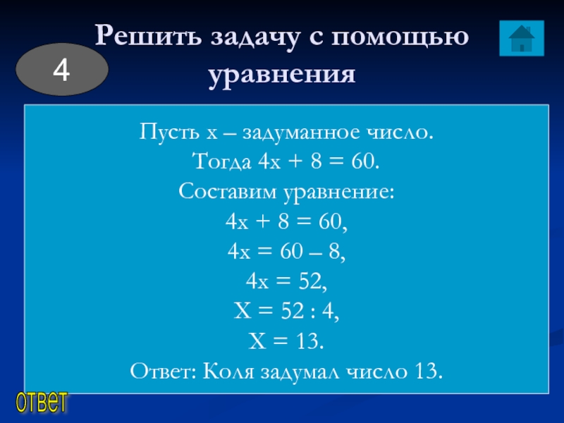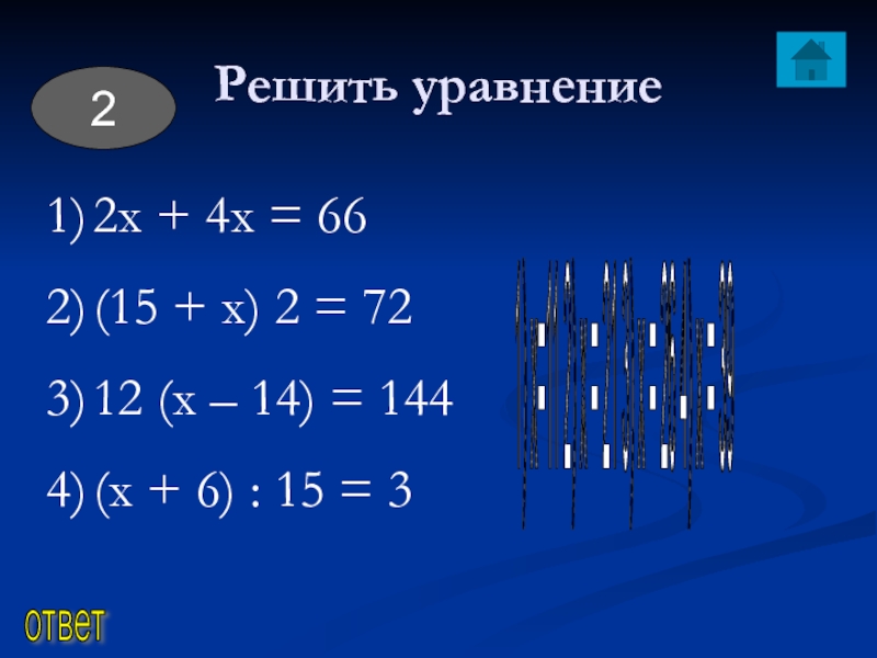 1) х=11 2) х = 21 3) х = 26 4) х = 39